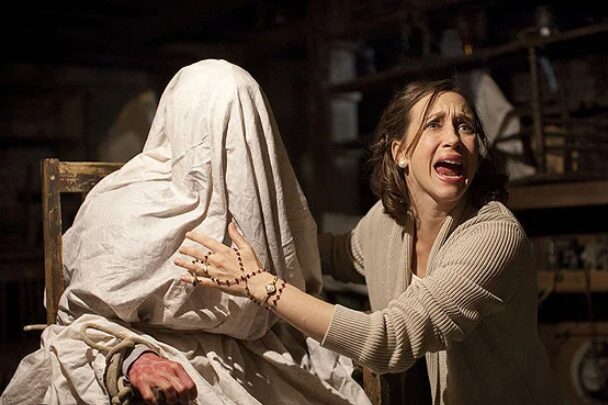 「ソウ」「インシディアス」のジェームズ・ワン監督が実話をベースに描き、全米ではR指定ながらも興行収入1億ドルを突破する大ヒットを記録したホラー。1971年、アメリカ・ロードアイランド州に建つ一軒家に、両親と5人の娘たちが引っ越してくる。古ぼけてはいるが広々とした夢のマイホームに沸き立つ一家だったが、奇妙な現象が次々と発生。娘たちに危害が及んだことから、一家は心霊学者のウォーレン夫妻に助けを求める。夫妻が周囲の土地を調べると、恐るべき血ぬられた歴史が明らかになり、夫妻は一家を救おうと館に巣食う邪悪なものに立ち向かうが……。ウォーレン夫妻にパトリック・ウィルソンとベラ・ファーミガが扮する。