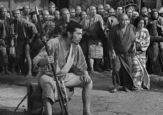 侍捜しのシーンでは早坂文雄の軽快な音楽が印象的。行き交う人も多い町がどこかも、村がどこかも設定は分かりません。それがノイズになることなく、映画に没入させるパワーがこの映画にはあります。
