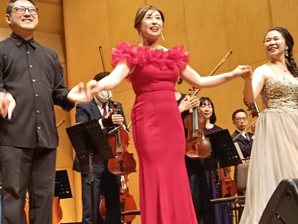 「サウンド・オブ・ミュージック」のメインテーマと「私のお気に入り(マイ・フェイバリット・シングス)」歌うのは大村在住のソプラノ歌手村岡恵理子さんです。赤いドレスに身を包んだ村岡さんは実に伸びやかに2曲を歌い上げ、歌の力の凄さを感じさせてくれます。